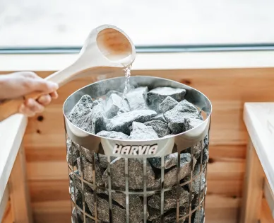 針尾ビーチウォークのサウナ体験を、もう一段深いものにしてくれるのがロウリュウです。 熱したサウナストーンに水やアロマ水を注ぐことで蒸気が立ち上がり、室内に一気に熱が広がります。